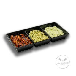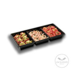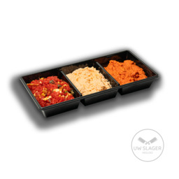 Filet american, gerookte kipsalade, en carpaccio tapenade