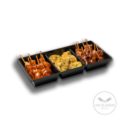 Kip ketjap, mini quiche en kipsate