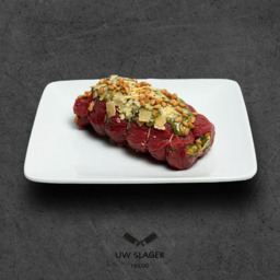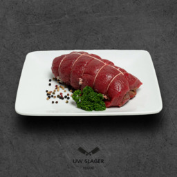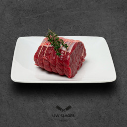 Gekruid, opgerold rundvlees van de lende met een mals vetrandje.